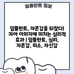 이 글에서는 임플란트가 심리, 자존감, 자아 이미지에 미치는 영향을 자세히 알아보고, 임플란트를 통해 새로운 삶을 시작할 수 있는 방법을 제시합니다.